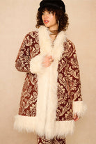 Designed for the spotlight, the Troubadour Red Tapestry Penny Lane Coat pairs decadent red-and-beige floral tapestry with our iconic Penny Lane silhouette. Cream faux fur trims the collar and cuffs, while hidden hook-and-eye closures keep the shape clean. Finished with a soft cotton lining, it feels just as good as it looks.
