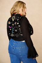 Romantic with an edge, the Storyteller Black Lace Trim Ruffle Blouse is a reimagined '70s staple that speaks to the storytellers, stargazers, and style rebels. Made from soft cotton and finished with intricate floral lace trims, this blouse features gentle ruffles that move with you. Its lightweight feel makes it ideal for layering under vests, pairing with flares, or styling over swimwear when the temperature rises.