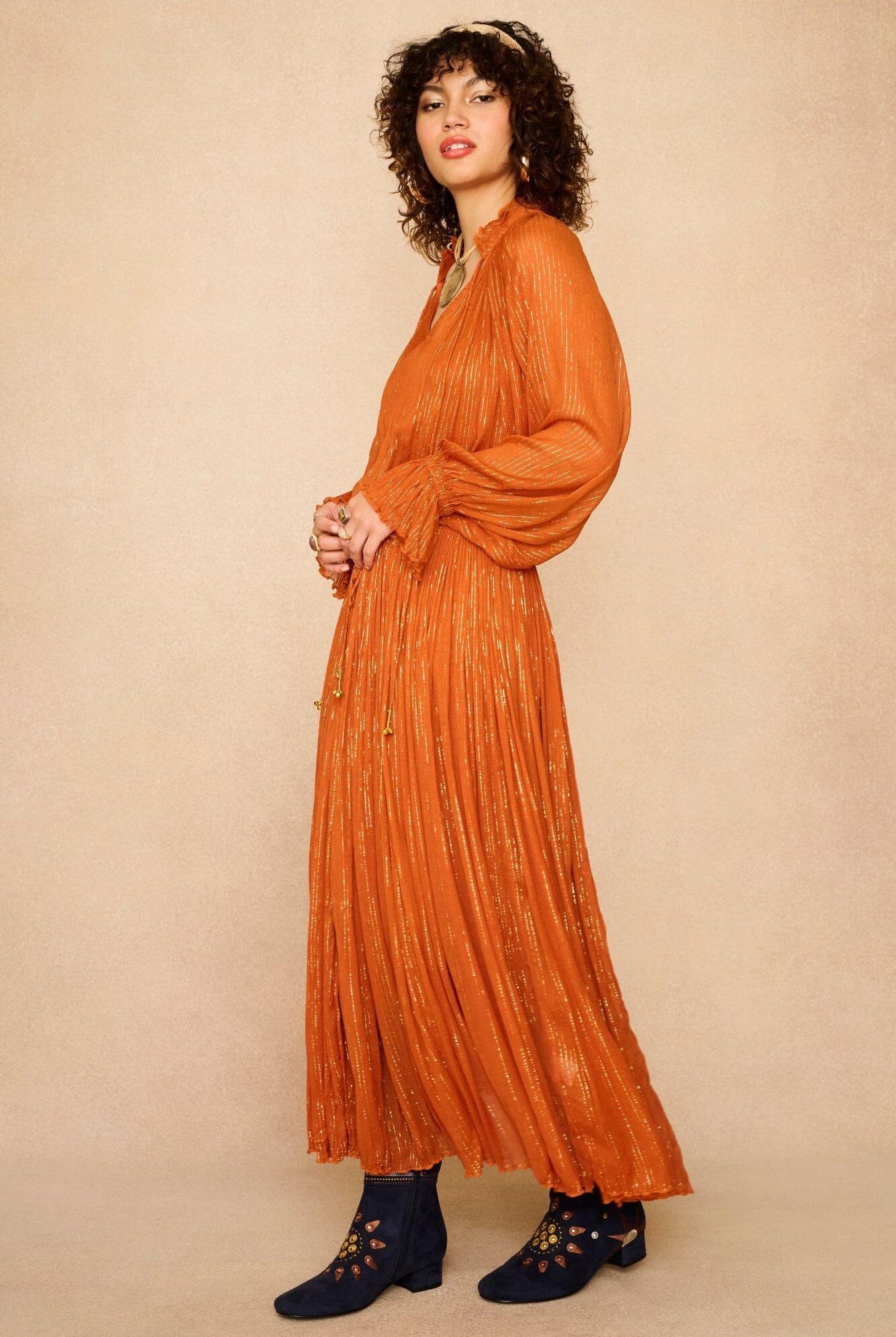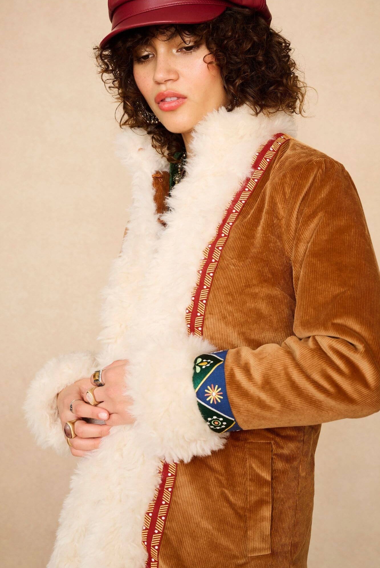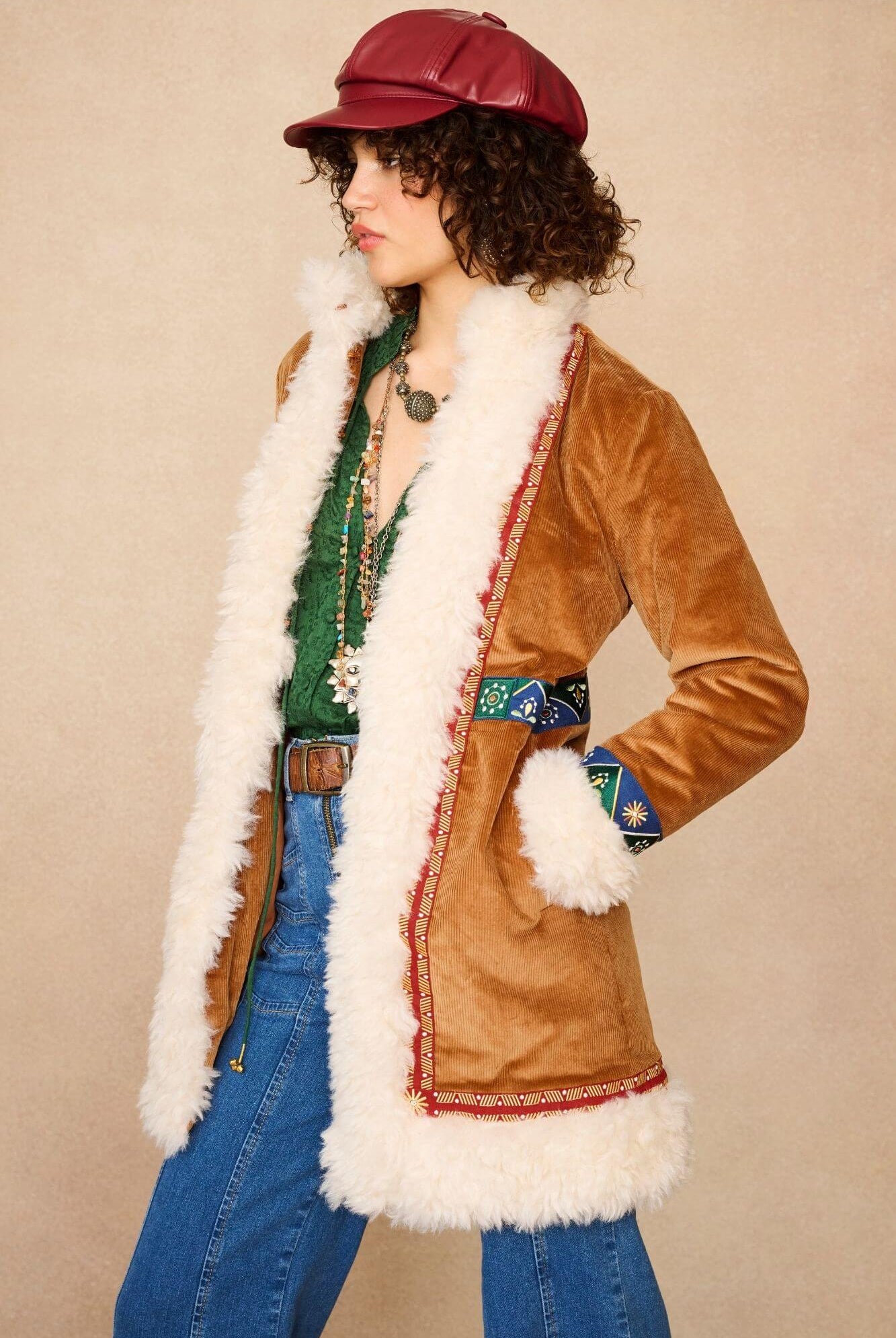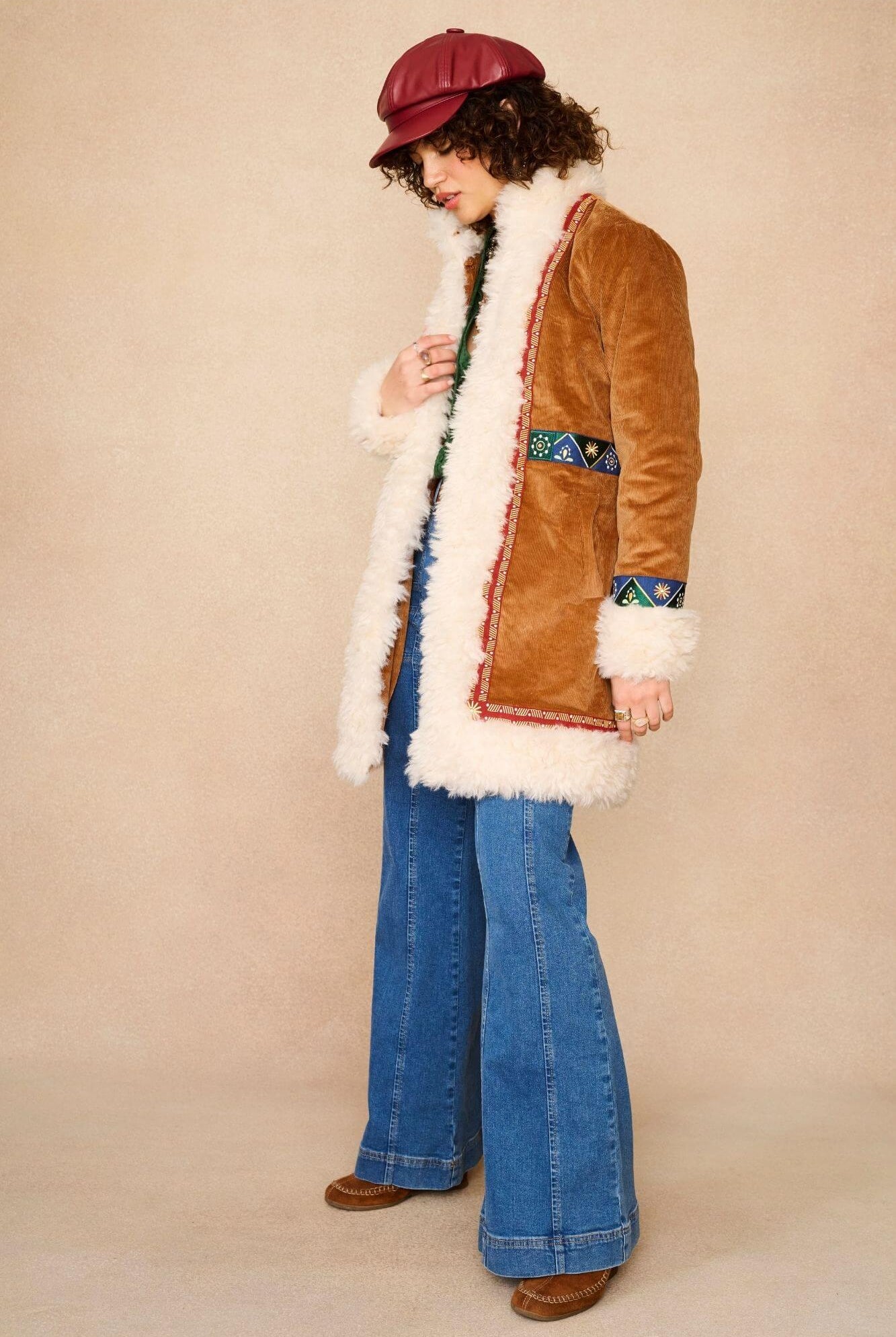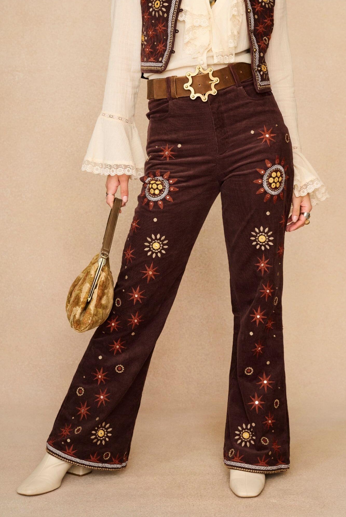 Rich navys, reds, oranges and purples create the perfect palette for abstract sun motifs and astrological symbols, while luxurious velvet and lurex meet embroidered trims and patchwork touched with gold.