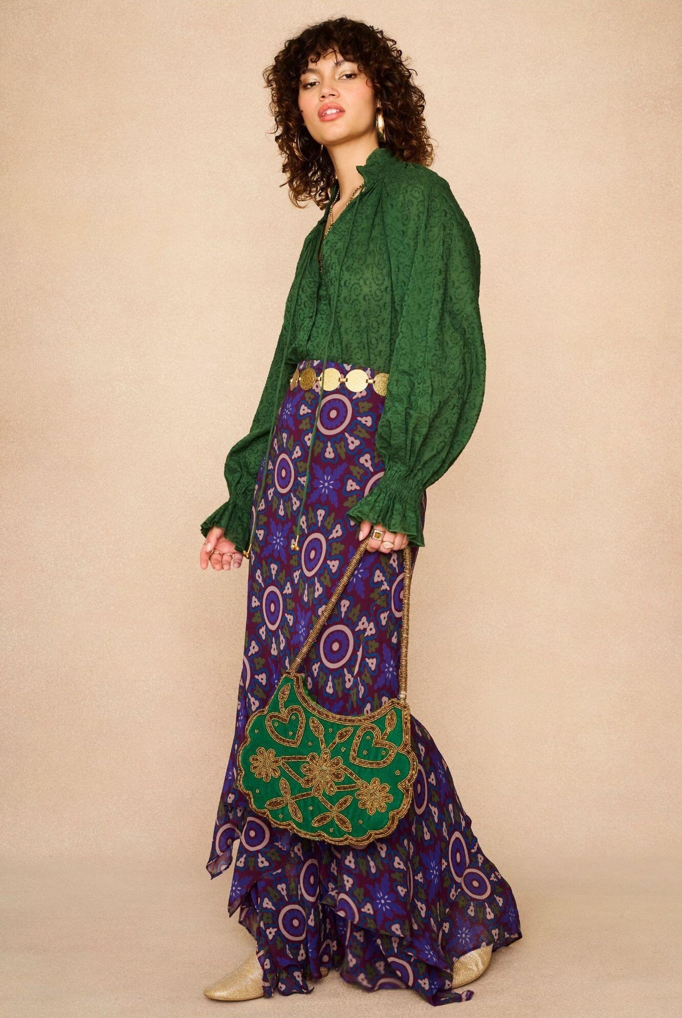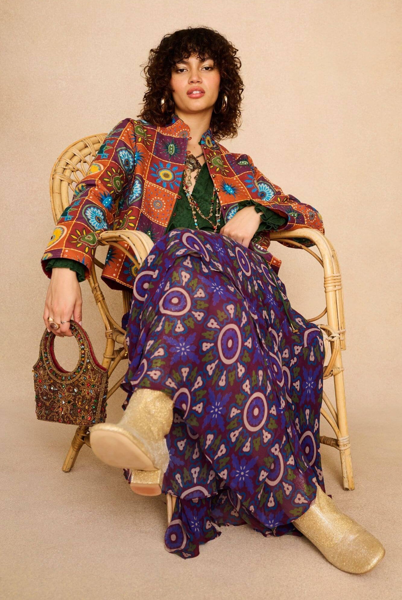 A mystical capsule collection featuring traditional Indian embroidery techniques, adorning each piece with intricate mirror work, tassels and ornate detailing that shimmer with every movement. A collection that feels both grounded in heritage craftsmanship and steeped in the spirit of bohemia.