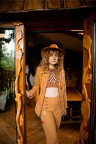 Whether you’re dancing barefoot at a summer festival, soaking up the sun on holiday, or styling it for an evening gig, this top brings instant stage presence. Pair it with our Folklore Brown Whipstitch Embroidered Jacket and matching trousers for a head-turning co-ord, or mix with vintage flares and layered jewels for a look that feels straight out of a 70s album cover.