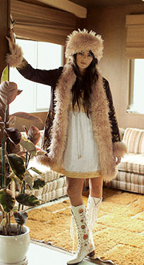 A soft haze settles on a summer afternoon. This story brings together the warm, earthy palette of the ‘70s — golden ochres, vintage browns, soft creams, and sun-faded orange. From floral-embroidered minis to reimagined Penny Lane coats, every piece is made for barefoot dancing, golden hour strolls, and that perfect in-between moment.