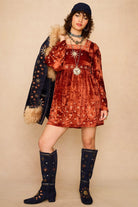 Constellation Orange Velvet Embroidered Mini Dress