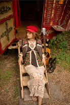 A versatile piece for everyday wear and weekend wandering, this bohemian lace-trim vest top carries the free-spirited charm of ‘70s icons like Joan Baez and Emmylou Harris, ready to slip effortlessly into your transitional wardrobe.