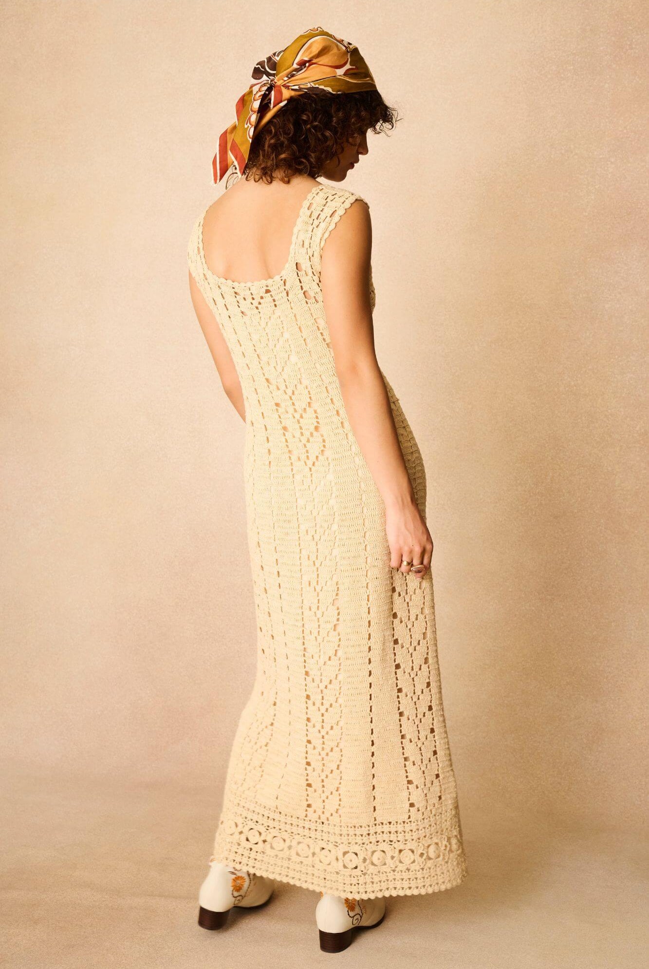 Adorned with bejewelled orange beads and vintage-inspired gold buttons, it can be worn open as a vest or fastened as a standout top. Like all the best vintage pieces, the velvet only gets better with age. Whether layered over a band tee and flares for everyday sparkle, styled with a mini dress and boots in autumn, or worn centre stage at a gig or festival, this piece delivers full Hendrix energy. Think bold prints, stacks of jewels, and a statement hat—he would’ve rocked it, and so will you.