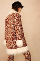 Designed for the spotlight, the Troubadour Red Tapestry Penny Lane Coat pairs decadent red-and-beige floral tapestry with our iconic Penny Lane silhouette. Cream faux fur trims the collar and cuffs, while hidden hook-and-eye closures keep the shape clean. Finished with a soft cotton lining, it feels just as good as it looks.